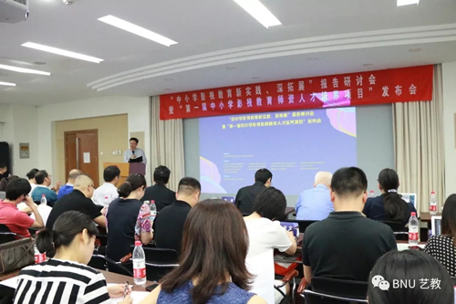 2019年6月11日上午,“中小学影视教育新实践、深拓展”报告会暨“第一届中小学影视教育师资人才培养项目”发布会在北京师范大学艺术与传媒学院何思敬会议室隆重举行。教育部高等学校戏剧与影视学类专业教学指导委员会主任、北京师范大学中国艺术教育研究中心主任周星教授首先阐释了会议的精神意义:这是第一次深入落实两部委《关于加强中小学影视教育的指导意见》文件精神的重要实践;是国家双一流学科戏剧影视学专业立身新时代的重大行动;是全国师范头牌高校探索中小学影视教育规律的普及化举措;是视觉时代美育精神指导下影视艺术基础教育的一次开拓探索。