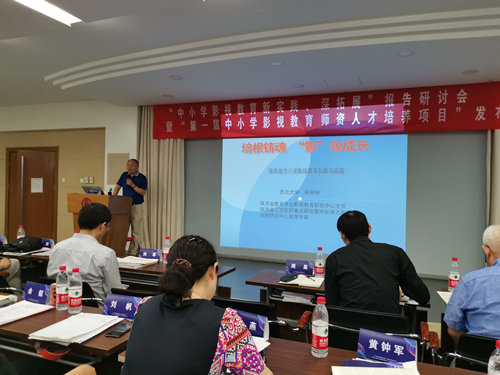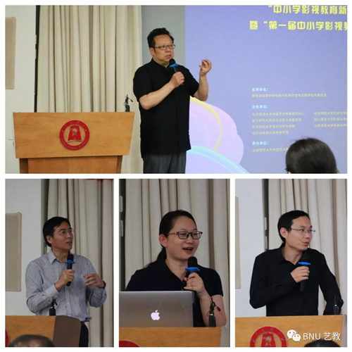 发布会结束之后,“中小学影视教育新实践、深拓展”报告会开始,天津师范大学音乐与影视学院副院长杨爱军教授,以本校的电影教育为例,呼吁创作、传播、研究适合电影教育发展的少儿电影精品;中国传媒大学戏剧与影视学院胡克教授,从全才、通才两个角度,具体阐述了中小学影视教育理想化师资的培养问题;陕西省电影家协会主席、西北大学文学院广电系主任张阿利教授分享了陕西省中小学影视教育的实践成果与探索经验,总结出GEC的运行机制,提出要搭建和确立新的平台,构建专业、系统的课程体系;中国人民大学影视与新媒体教研室主任陈阳教授举例并支持公益性的中小学影视教育活动;重庆市电影家协会副主席、西南大学文学院影视艺术系主任刘帆教授提出,随着5G时代和读图时代的到来,媒介素养以及影像思维的国民素养,如何在中小学教育中解决和体现;哈尔滨师范大学传媒学院副院长安立国教授,在学院影视教育调研的基础上,提到了东北地区影视教育的现状与问题;福建师范大学传播学院副院长吴青青教授,分享了福建省中小学影视教育调查的成果,以及在中小学影视教育课程化方面作出的努力;浙江师范大学文化创意与传播学院副院长余韬副教授,以自己5年来影视教育的实践经验,指出了浙江省在中小学影视教育推进中的瓶颈与问题;河北大学艺术学院影视系副郭燕副教授,以自身为案例,谈到河北地区中小学影视教育的师资建设问题;四川师范大学大学的胡晓老师,汇报了四川师范大学在中小学影视教育方面所作出的努力和取得的成果。